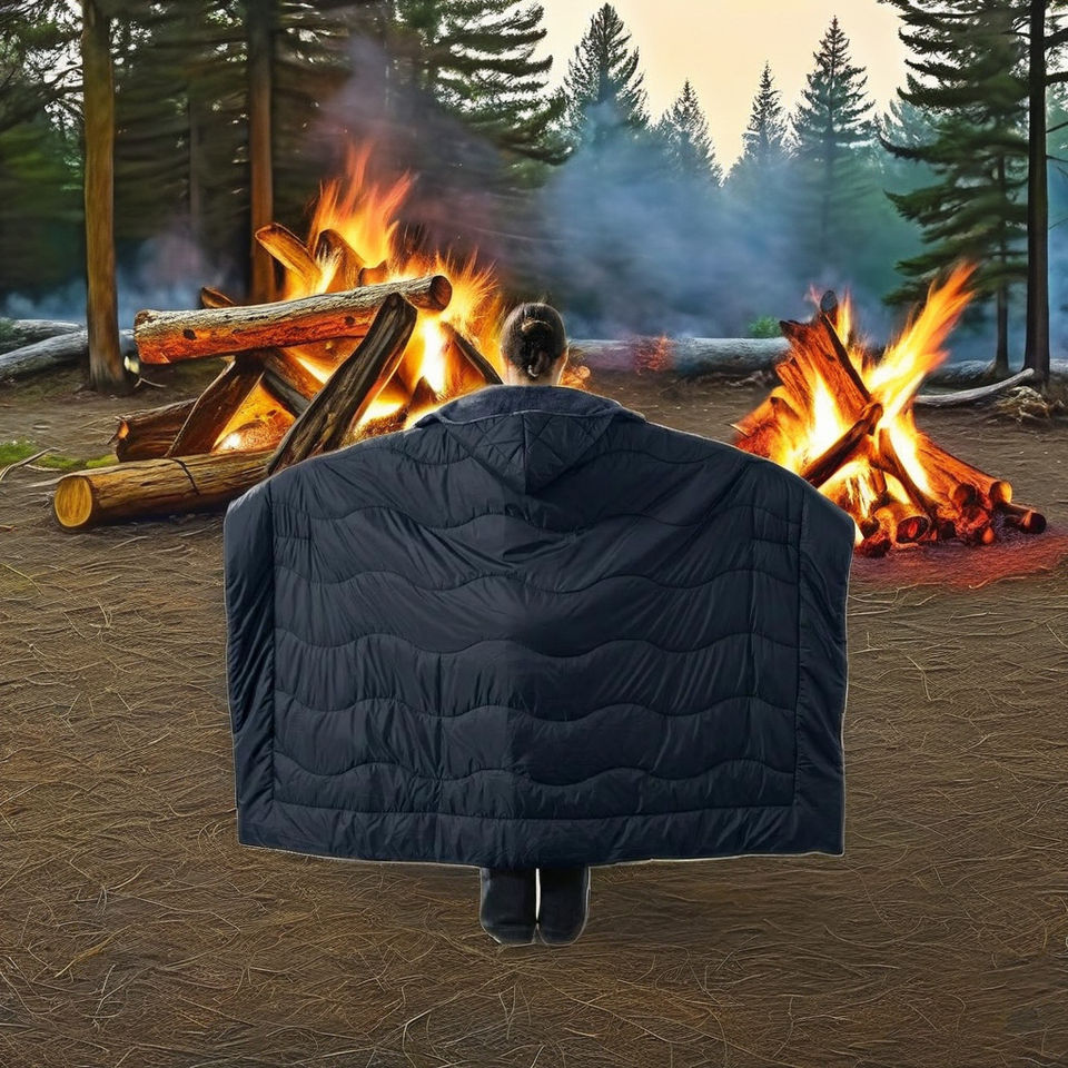 Chaqueta de Invierno Impermeable y Cortavientos de Tejido Softshell con Cremallera y Estampado, Manta Portátil para Exteriores para Camping y Senderismo