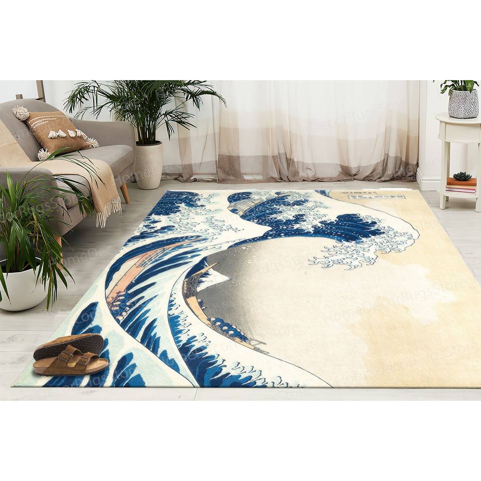 Alfombra con Estampado de Paisaje Ondulado: Elegancia Costera para Sala de Estar, Alfombra Delgada No Tejida