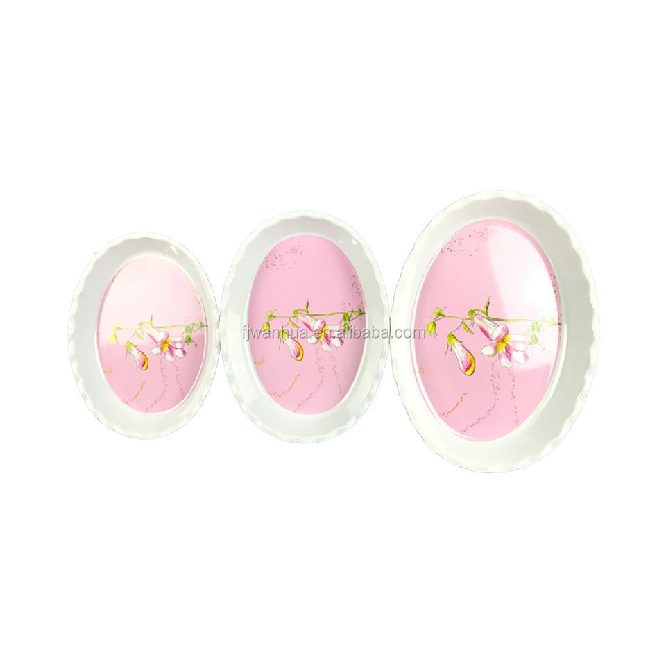 Plato hondo ovalado de melamina con lado ondulado para servicio de cena de restaurante de hotel con calcomanía personalizada