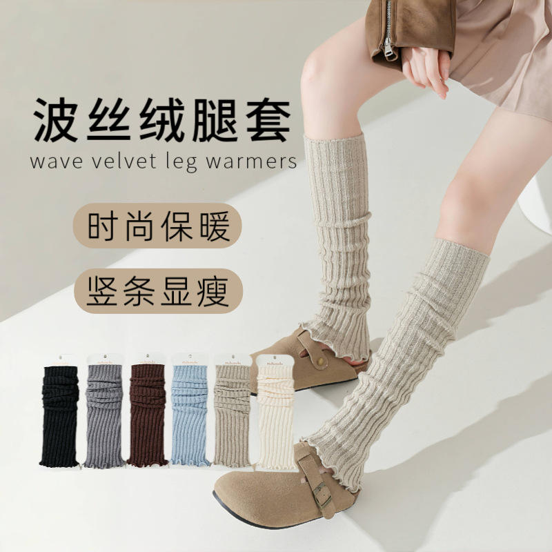 Wave Velvet Leg Warmers Solid Color Knit Winter Spring Autumn Fashion Warmth Slimming Effect