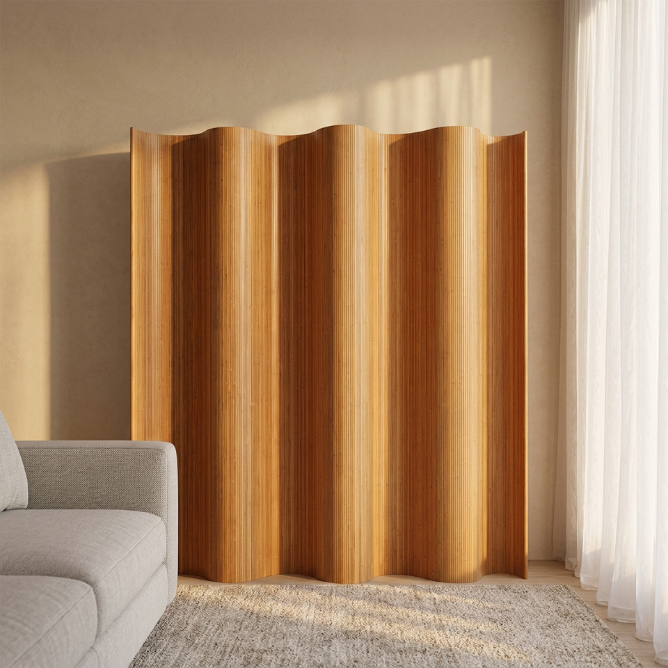 Paneles Decorativos de Bambú Ondulado para Sala de Estar o Restaurante, Separador de Ambientes de 6 x 8 Pies, Color Beige, Ambos Lados