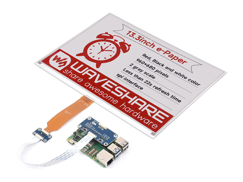 Waveshare Pantalla de Tinta Electrónica de 13.3 Pulgadas HAT B -SKU-27236, Pantalla de Tinta Electrónica de 13.3 Pulgadas (B), Pantalla E-Ink, 960x680 Píxeles, Re