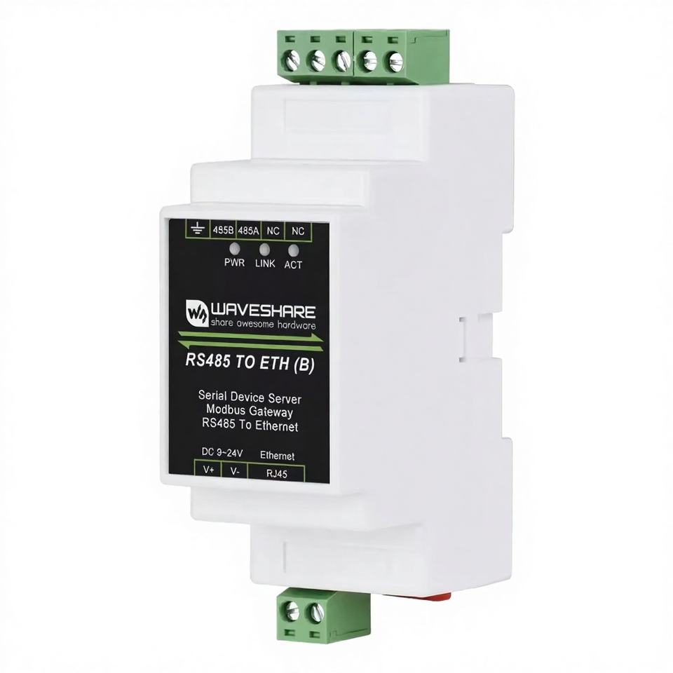 Servidor Serial Industrial Modbus RS485 de Waveshare, Modelo RS485 a Módulo Ethernet ETH (B) con RJ45 TCP/IP, Montaje en Riel, Hecho en China