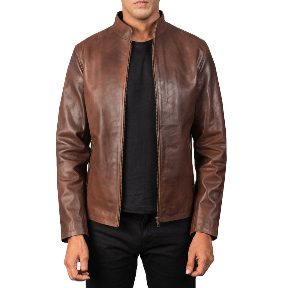 Chaqueta Bomber de Invierno Impermeable de Cuero Marrón Encerado de Primera Calidad, Estilo Motero, Cuello Redondo, Aspecto de Cuero de Gamuza, Ecológica