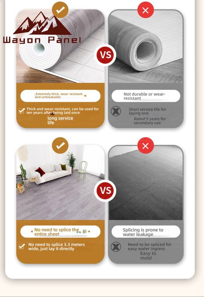 Rollo de Suelo de Vinilo de PVC Resistente al Agua y al Desgaste de Alta Calidad Wayon para Baño y Apartamento