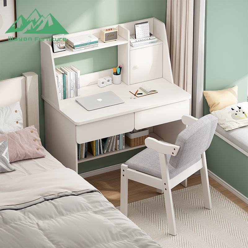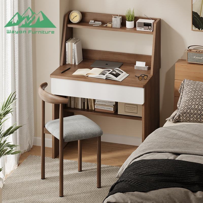 Escritorio de Computadora Moderno y Minimalista Wayon de MDF con Estantería Integrada para Dormitorios Pequeños
