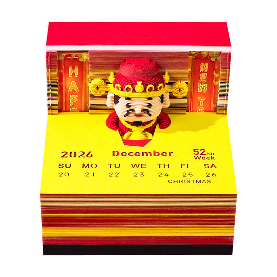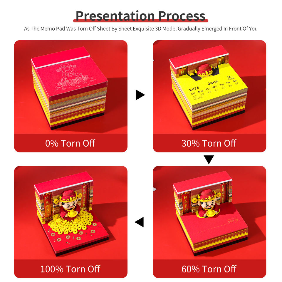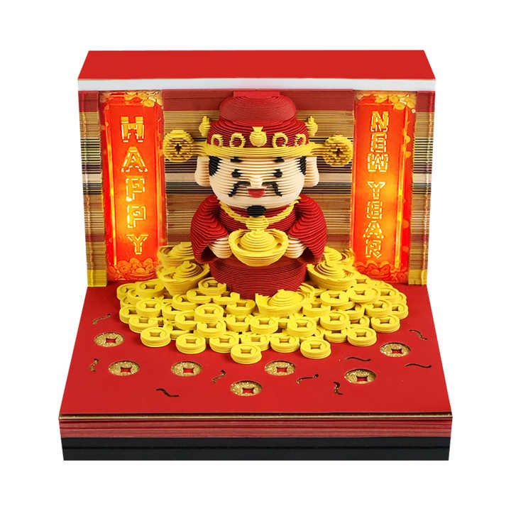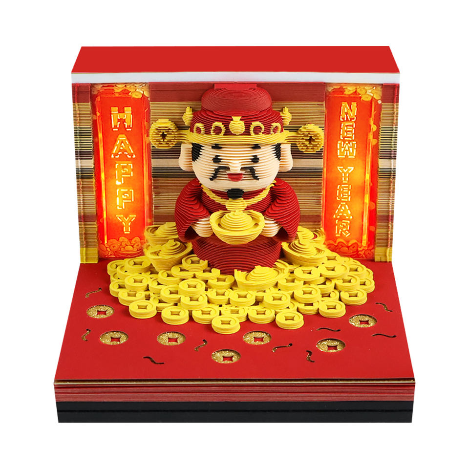 Bloc de Notas de Papel con Diseño de Lingote de Oro con Tema de Feliz Año Nuevo, Escultura en Capas Desprendibles 3D del Dios de la Riqueza, con Luz LED