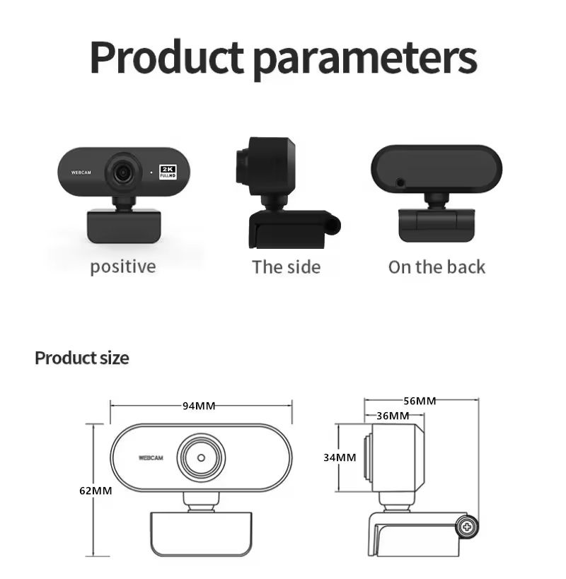 Webcam 2K Full HD Cámara Web con micrófono USB Plug Web Cam para PC Computadora Mac Laptop Escritorio YouTube Skype Mini Cámara