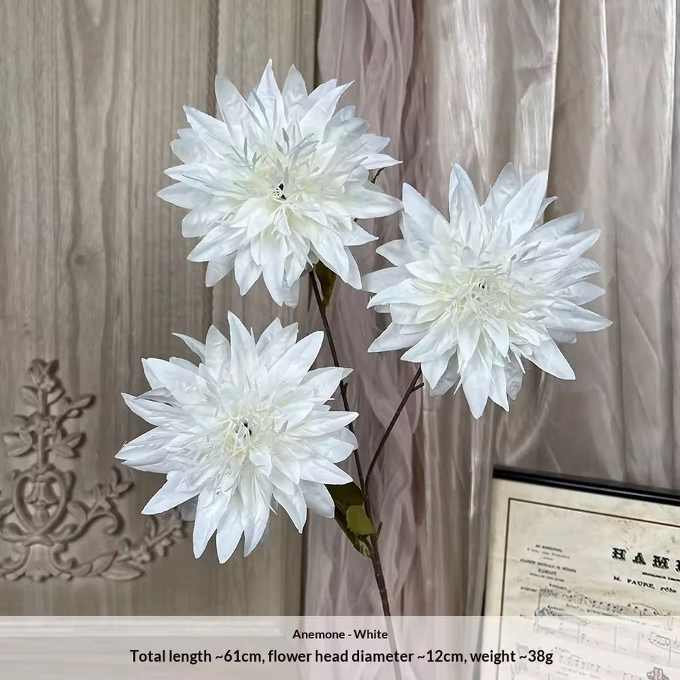 Flor de anémona de tres cabezas para boda, flor de seda artificial, decoración suave para el hogar, arreglo floral, peonía occidental