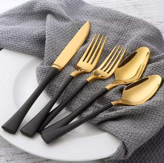 Juego de Cubiertos de Lujo para Bodas y Cenas, Juego de Cubiertos de Acero Inoxidable de Alta Calidad con Mangos Negros