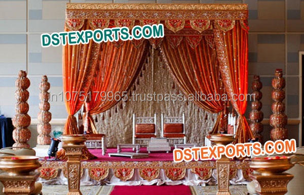 Fondo de boda decoración satén colorido hecho a mano bordado último diseño azul Rosa Lehriya cordón telón de fondo Material satinado