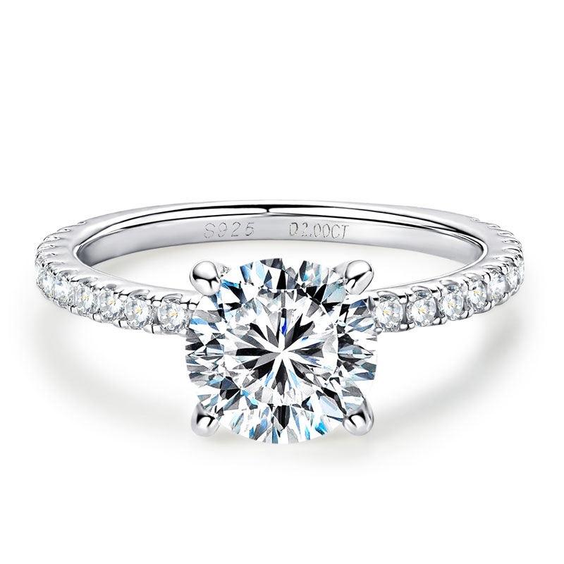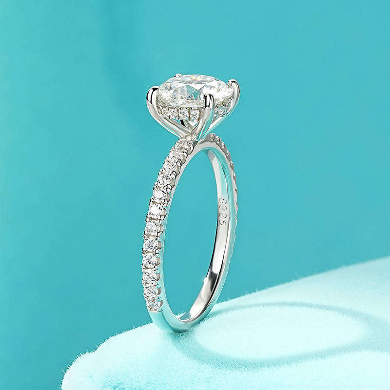 Anillos de Boda de Plata de Ley con Diseño Clásico, Anillos Apilables de Eternidad de 8 mm, Anillos de Compromiso de Moissanita de 2 Quilates con Halo Oculto y Pavé
