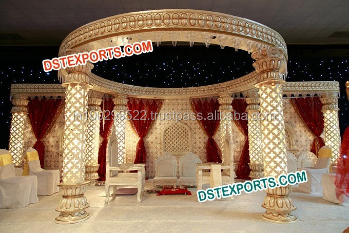 Escenario de cristal decorado para boda, escenario de recepción de boda con pilares de cristal de fibra, nuevo Mandap de instalación para escenario