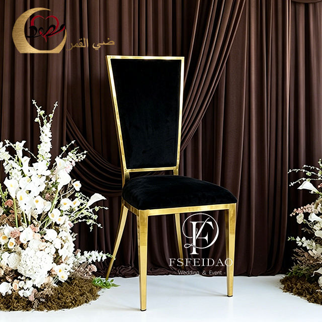 Silla de Comedor Dorada de Metal con Respaldo Alto para Eventos y Banquetes