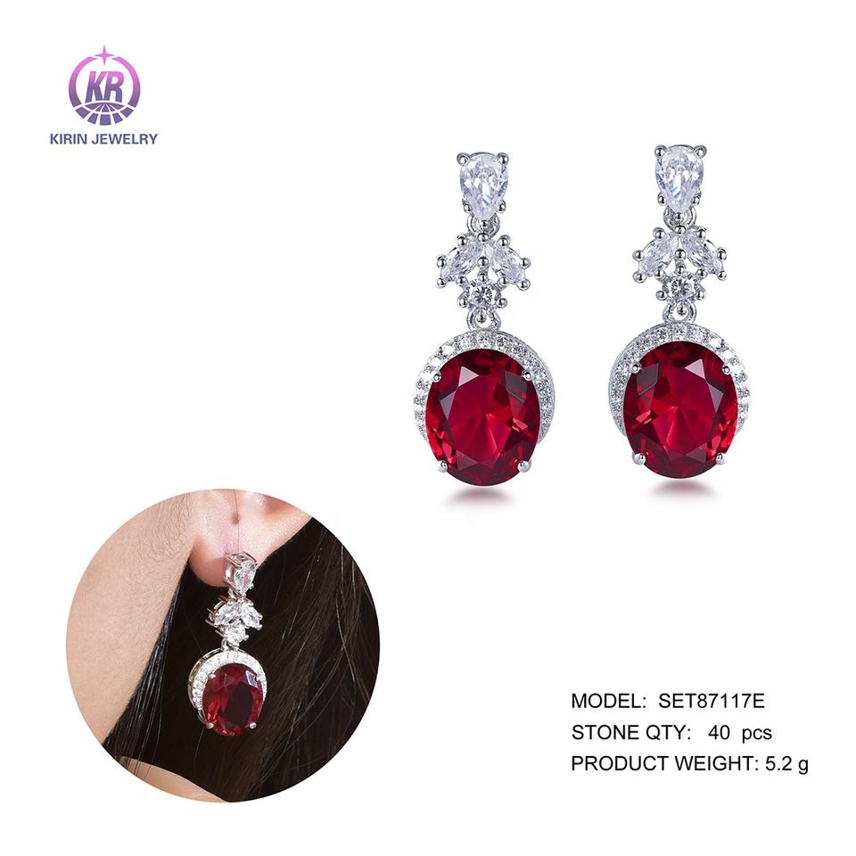 Pendientes de boda con circonita de Rubí, micro pavé, 5a, CZ, alta cantidad mínima, pendiente de Boda nupcial