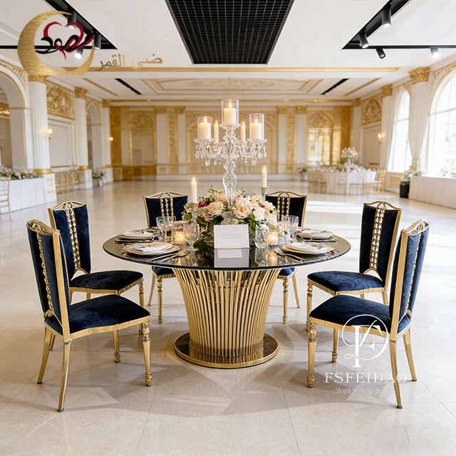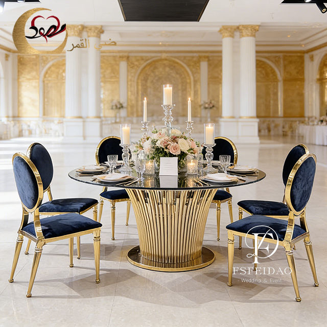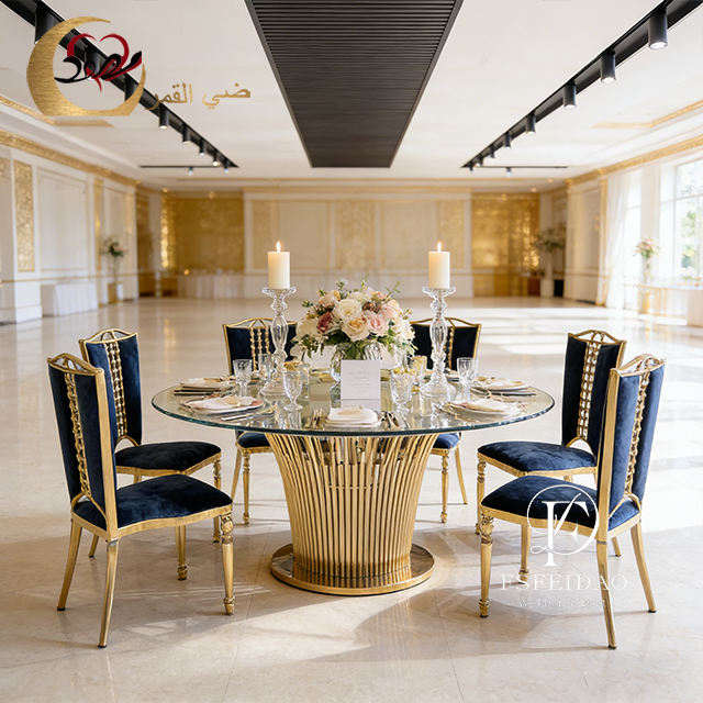 Juego de Mesa de Comedor Redonda con Base de Acero Inoxidable y Tapa de Vidrio para 6 Personas, Romántico y Elegante, para Cocina, Hotel, Eventos y Bodas