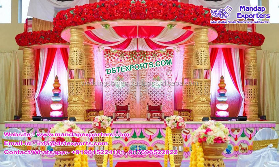 Conjunto de Mandap redondo tallado de fibra de boda, Mandap de fibra de boda de última forma redonda, Mandap de fibra dorada para boda majestuosa, Reino Unido, EE. UU., Canadá