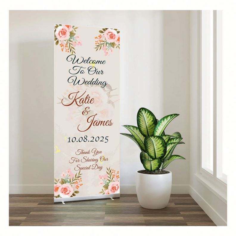 Banderola Retráctil con Diseño Floral para Bodas, Impresión Digital, Soporte para Banderola Enrollable, Letrero de Bienvenida, Accesorio de Exhibición