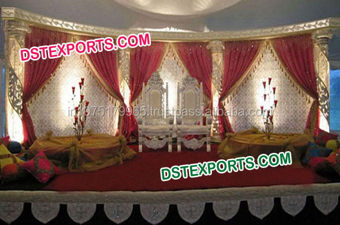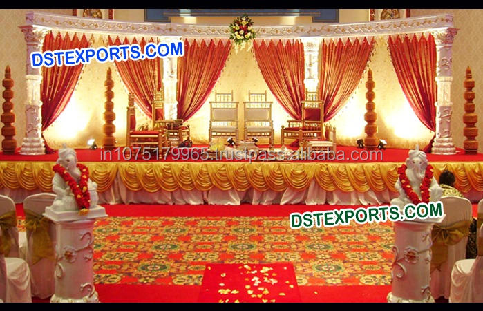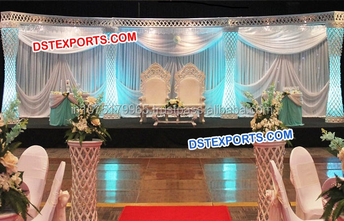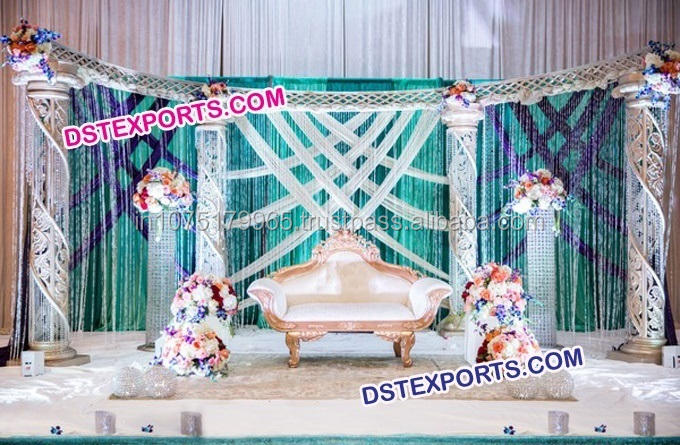 Conjunto de escenario de pilar de cristal dorado para boda, pilares de cristal de media luna, escenario de boda para interiores, conjunto de escenario de cristal para boda, India, Mandap, Reino Unido