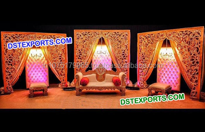 Panel de Fondo Cuadrado de Fibra Dorada para Bodas, con Marco Jali, Ligero, Personalizable, Tallado, para Escenarios