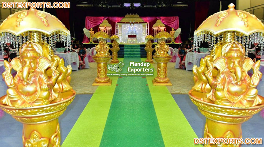 Wedding Golden Peacock Style Pedestal PillarsProduct name