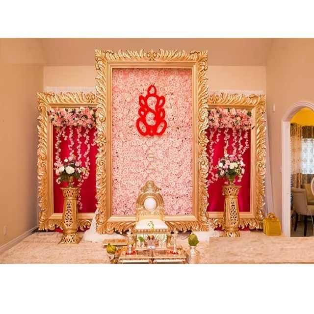Mandap de Boda con Marco Dorado, Decoración de Lujo para Bodas, Telón de Fondo con Paneles Tallados en Fibra Dorada Deslumbrante, Australia