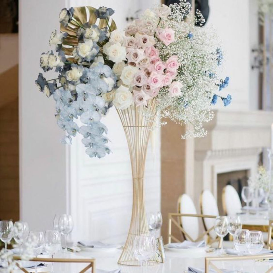 Soporte de exhibición floral de columna de florero de Color dorado de Metal de boda para suministros de decoración de centro de mesa de boda