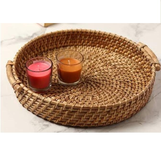Decoración de mesa para fiesta de bodas, bandeja de ratán, último diseño, bandeja redonda de madera para servir, para uso doméstico.