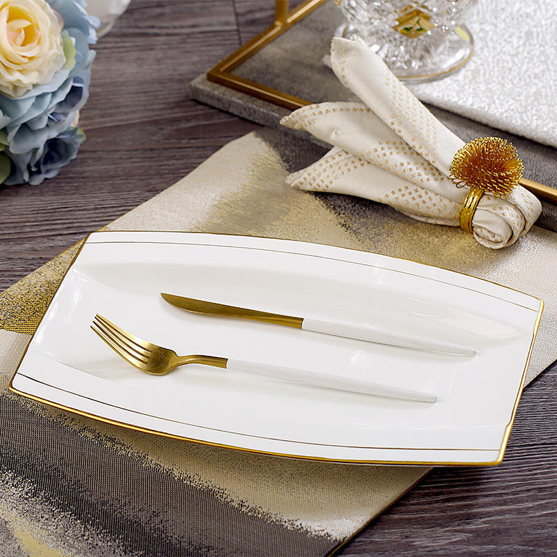 Juego de Vajilla para Fiestas y Bodas, Decoración con Borde Dorado para Hoteles y Restaurantes, Vajilla de Cerámica y Porcelana, Juegos de Vajilla de Gres