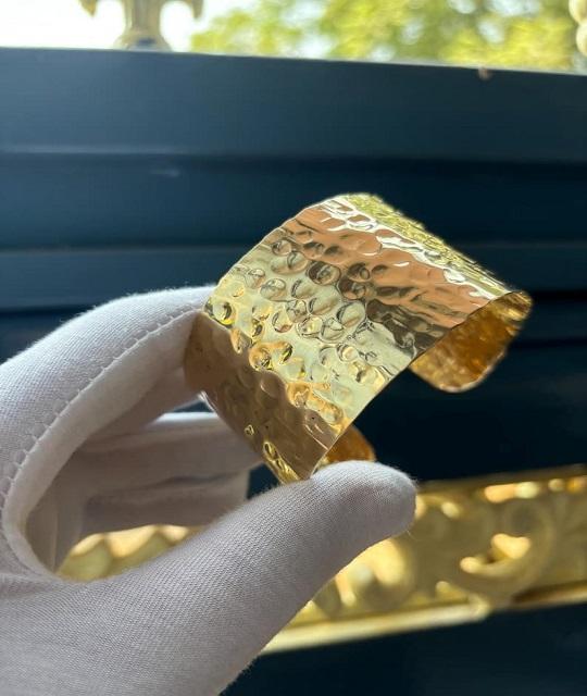 Brazalete de latón para mujer, joyería para fiesta de boda, diseño de martillos de alta calidad hecho a mano, joyería de moda, brazalete chapado en oro moderno