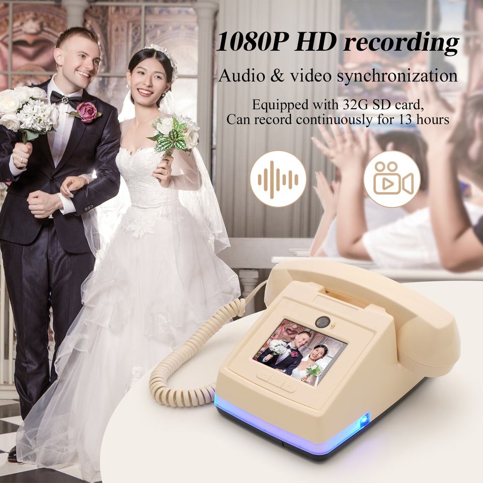 Teléfono de Mensajes de Bienvenida para Invitados de Boda, con Video y Audio de 1080P, para Recepciones, Fiestas Anuales, Cumpleaños, Libro de Visitas de Boda, Teléfono Vintage