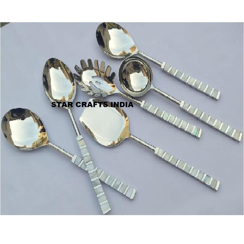Juegos de servidor de ensalada de boda, vajilla de acero inoxidable con chapado en oro, elegante juego de servidor de ensalada de oro con mango de nácar