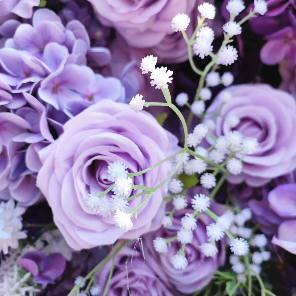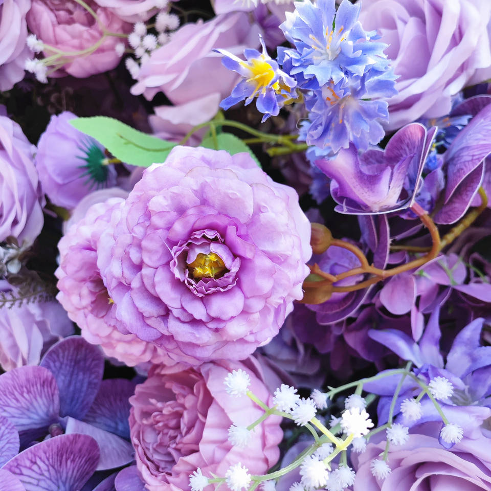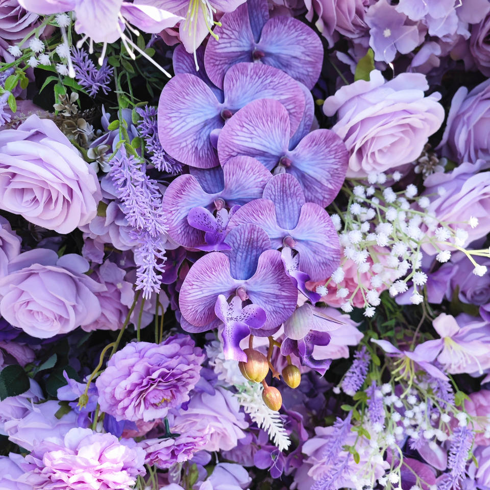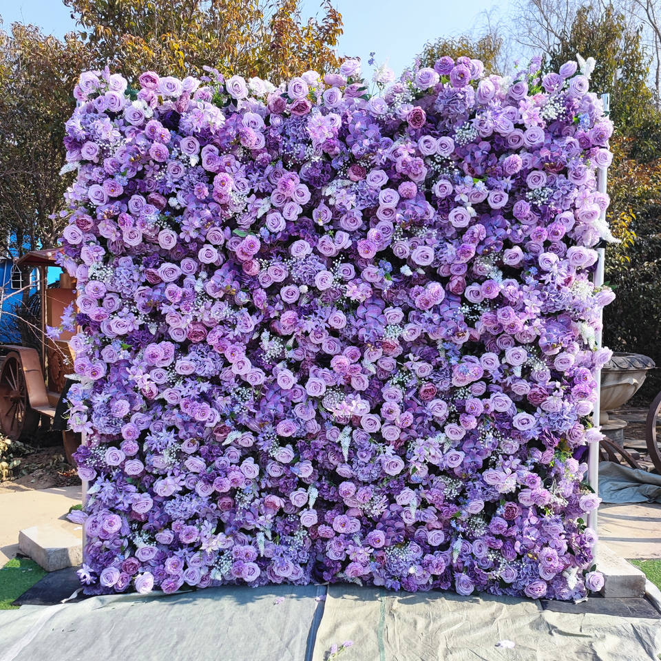 Decoración de Pared de Flores Artificiales de Seda 5D Púrpura para Escenarios de Boda, Rollo de 8x8 Pies
