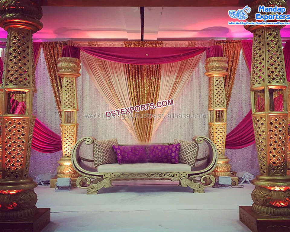 Wedding Walkway Elephant Carved Golden PillarsProduct name