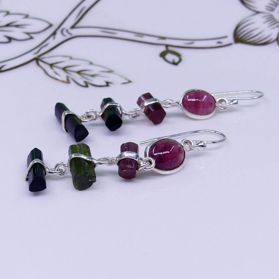 Ropa de boda, joyería chapada en oro de Plata de Ley 925, piedras preciosas de turmalina múltiple, Pendientes colgantes para mujer