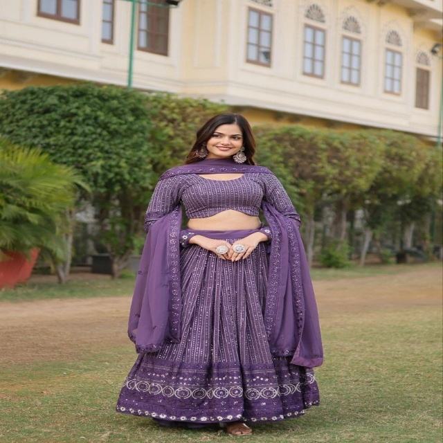 Nombre del Producto:Lehenga Choli de Georgette Sintético con Bordado de Jari y Lentejuelas