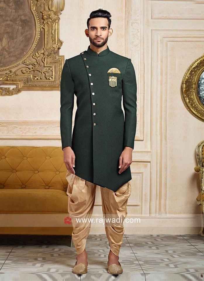 Ropa de boda de seda semijacquard para hombre, ropa de trabajo con autograbado, Indo occidental, última colección