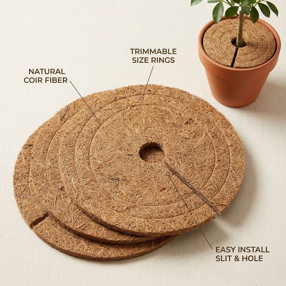 Manta de control de malezas para plantas, anillo de acolchado para plantas y árboles, manta de fibra de coco sostenible para retención de humedad