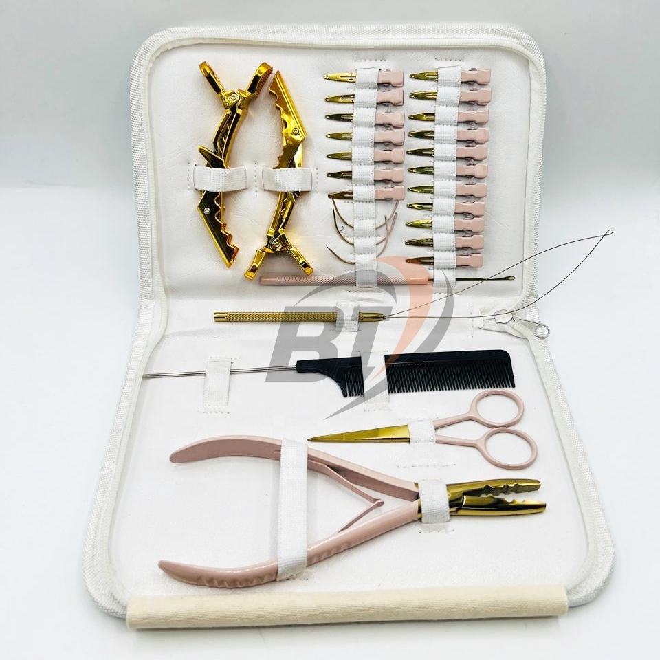 Kit de Herramientas Multifuncionales para Extensiones de Cabello con Tijeras, Peine, Clips para Separar el Cabello Rápidamente, Gancho en Forma de C y Agujas