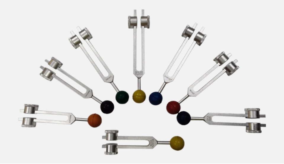 Diapasones de Sintonización de Chakras y Estrellas del Alma con Peso - Juego de 8 Diapasones Curativos con Bolas de Goma