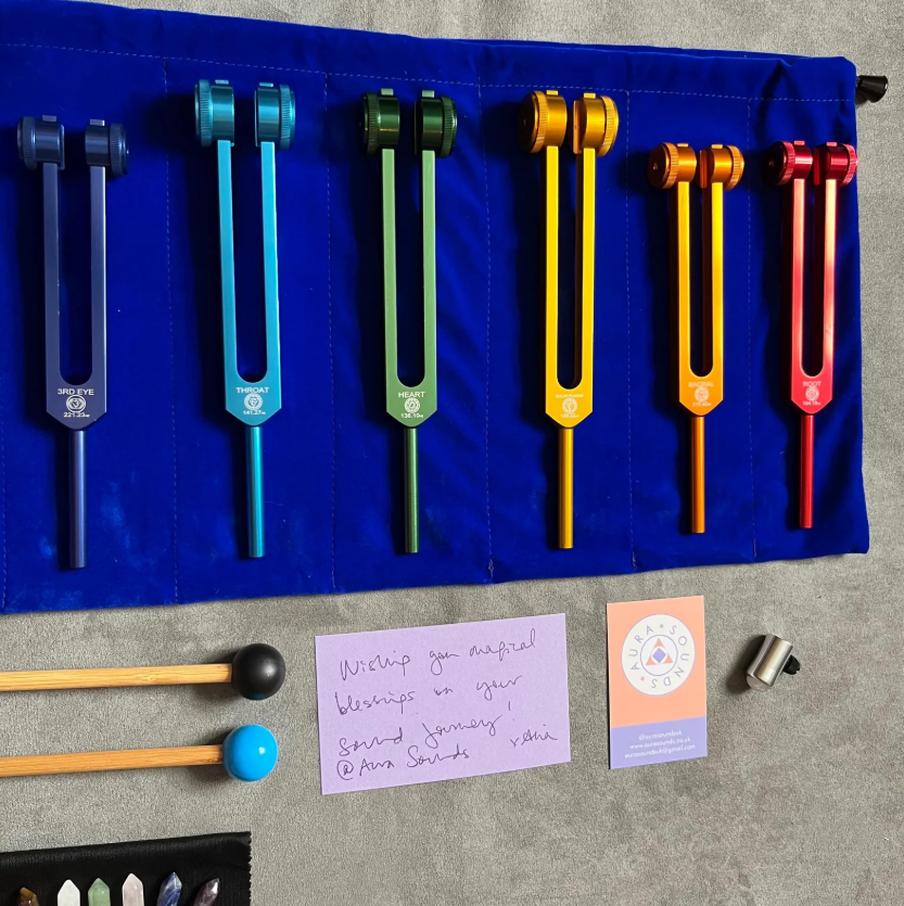 Juego de 9 Diapasones de Solfeggio Sagrados con Peso, Activador y Bolsa de Terciopelo