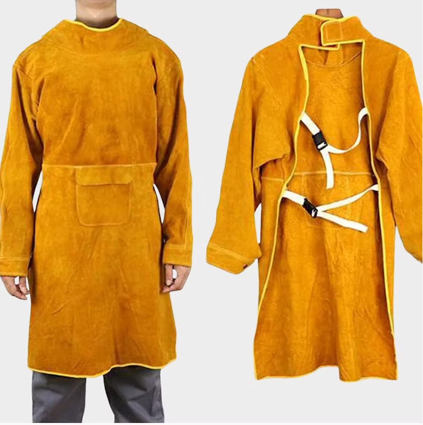Delantal de soldadura anti-escaldaduras con mangas o delantal de cuero vacuno resistente al fuego y al calor