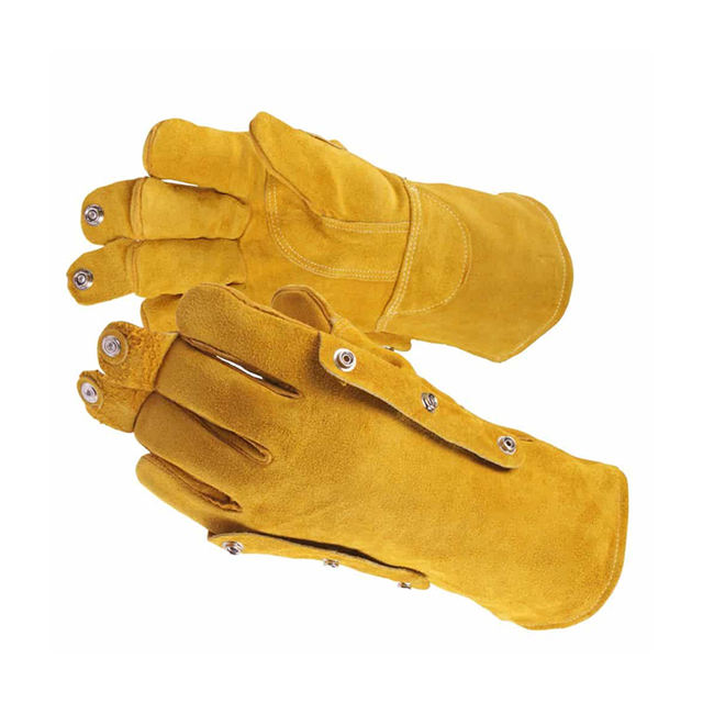 Guantes de soldadura Reforzados de cuero Partido de vaca Guantes para hornear resistentes al calor Guantes de soldadura de cuero partido De Vaca resistentes