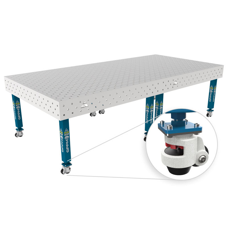 Banco de soldadura con ruedas SteelPlus INOX GPPH 3x1,48 Mt 12mm de espesor, 16mm agujeros rejilla diagonal