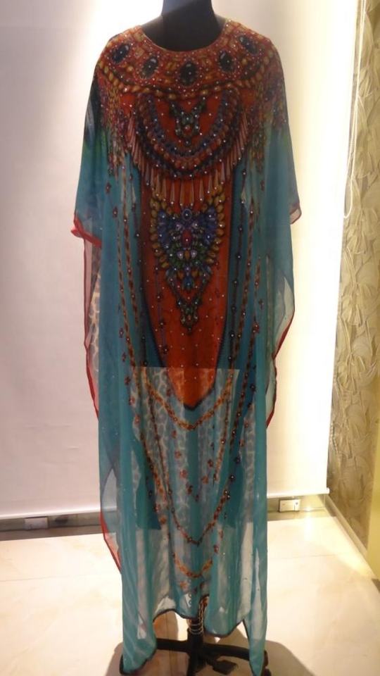 Caftán impreso Digital multicolor bien elaborado. Caftán