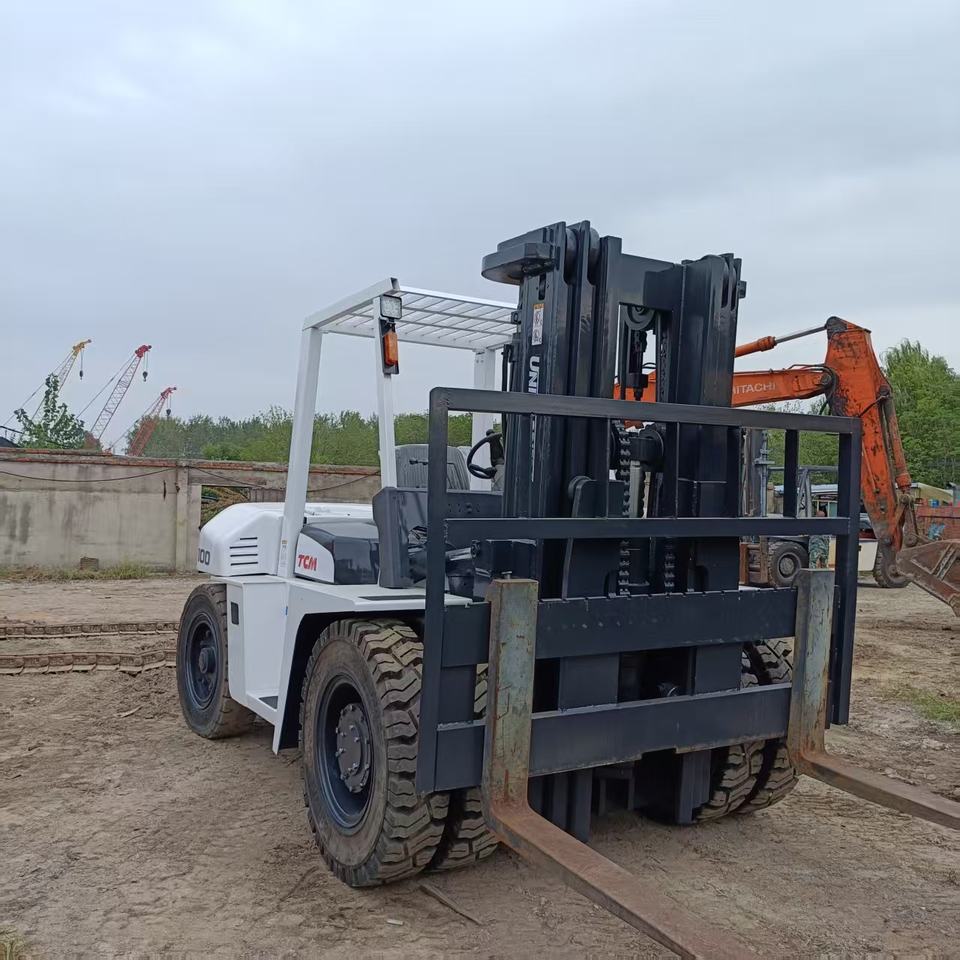 Montacargas Diésel TCM FD100 Usado en Buen Estado, 10T, Altura de Elevación de 4m-6m, Motor Isuzu, Mástil de Dos Etapas, Neumáticos Sólidos