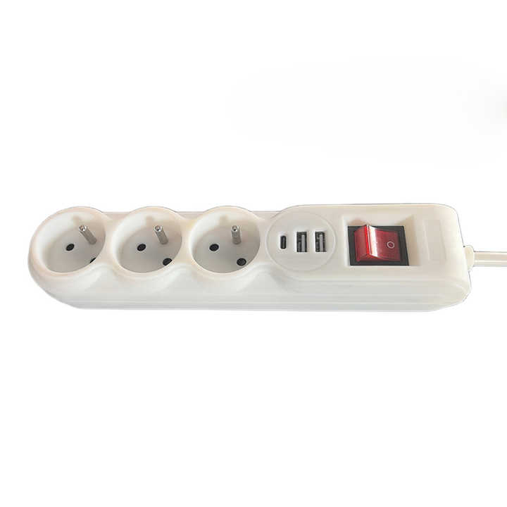 Wellsdiy 3 vías enchufe de extensión estándar francés IP 20 3x1,5mm 2 Cable 1,5 metros con puertos USB y tipo C