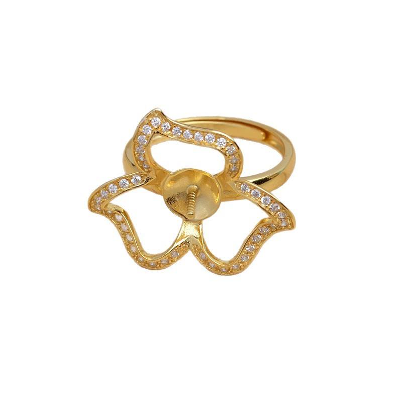 Base de Plata 925 Wenchi para Joyería de Perlas, Anillo de Flor de Trébol 16582, Soporte Vacío para 10-12 Perlas