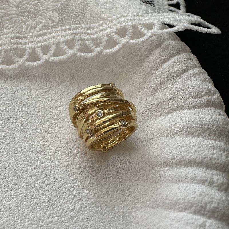 Anillos de Moda Wenchi S925 de Plata Pura con Colgante Multilínea, Estilo Arquitectónico Retro Francés, Diseño de Nicho Medieval, Simple y Neutral