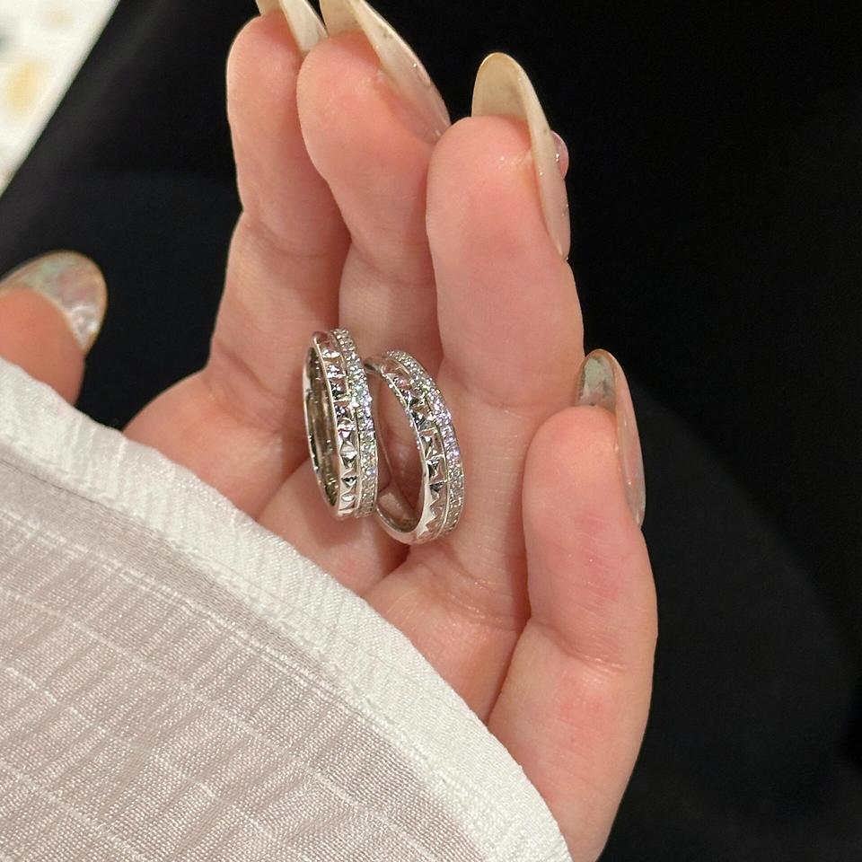 Anillo de Cola Wenchi de Plata de Ley S925, Medio Diamante, Medio Liso, Patrón de Rejilla de Diamantes, Exquisito, de Alta Gama, Moda China, IGI